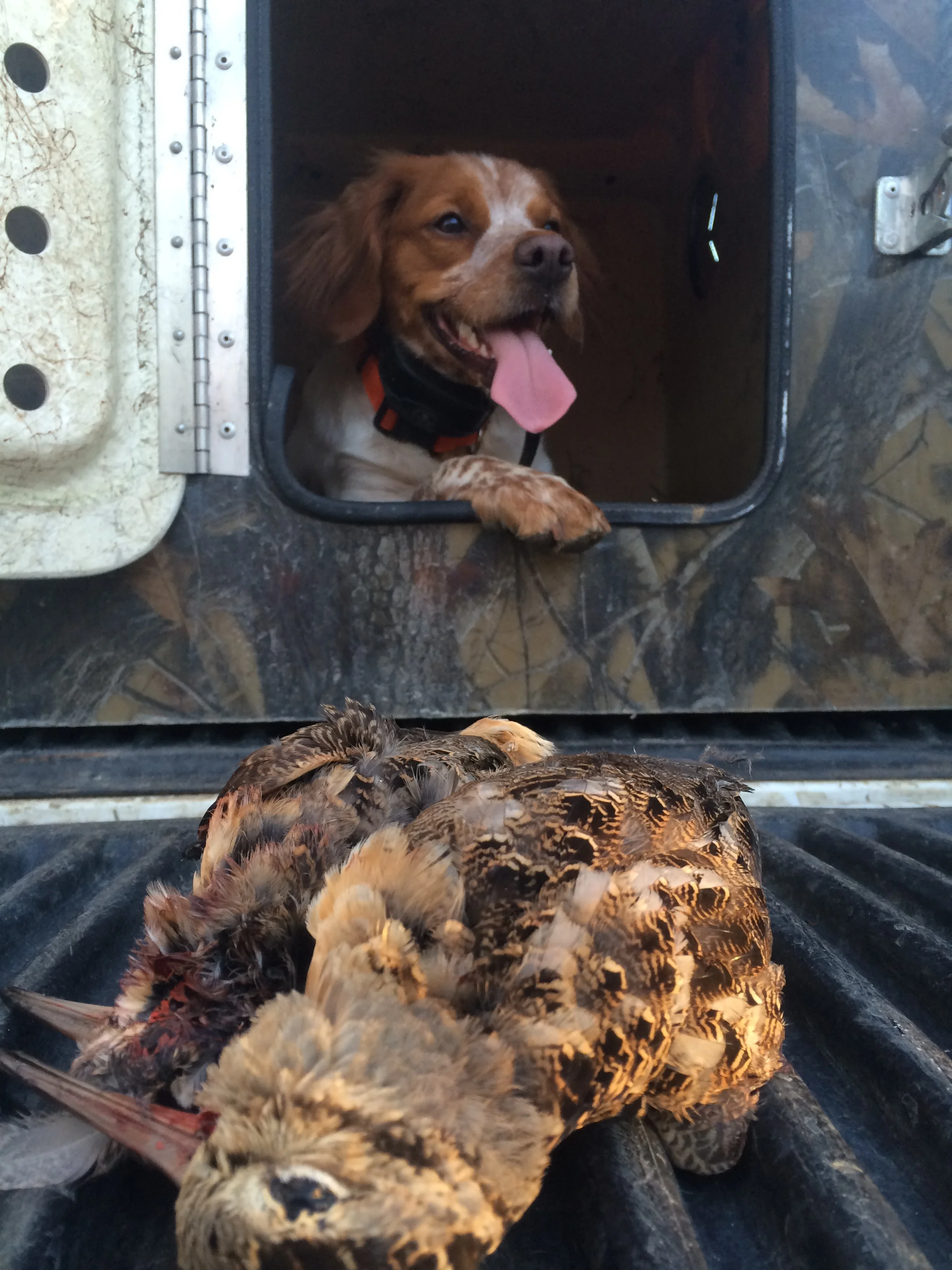 Our Official Guide Dog, Eula, with her prize woodcocks from January, 2016.